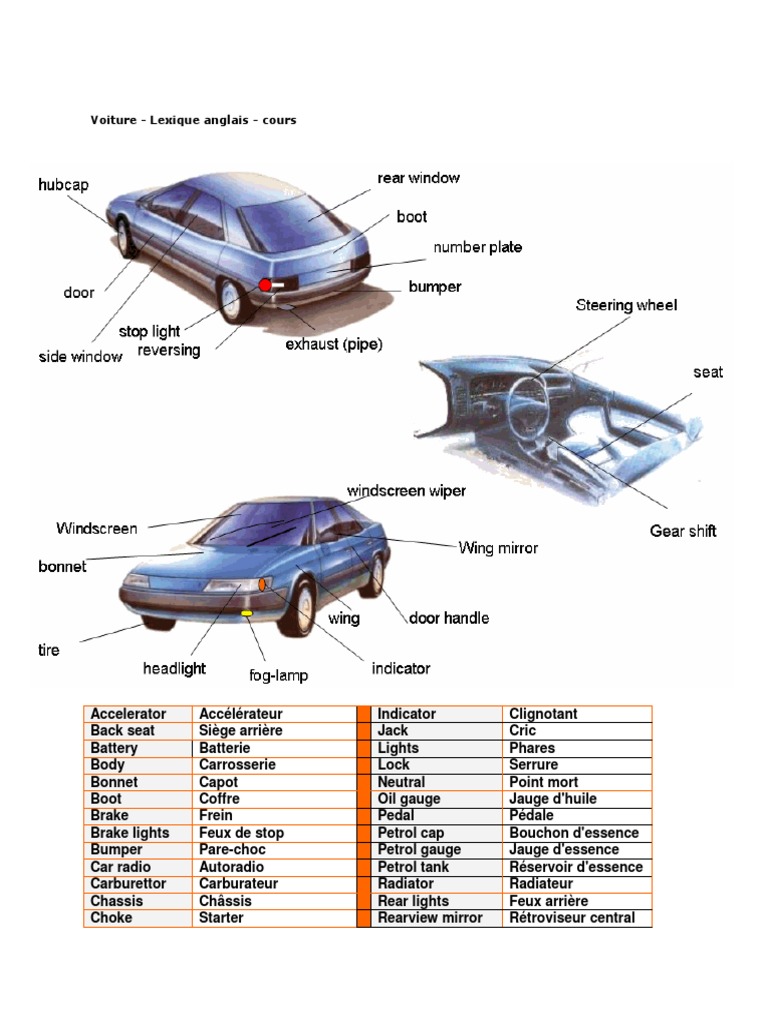 Fr Eng Vocabulaire Voiture
