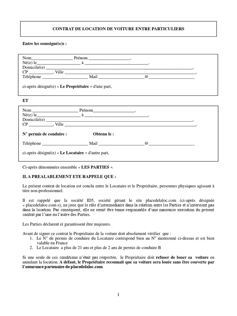 Contrat De Location De Voiture Entre Particuliers Pdf Assurance